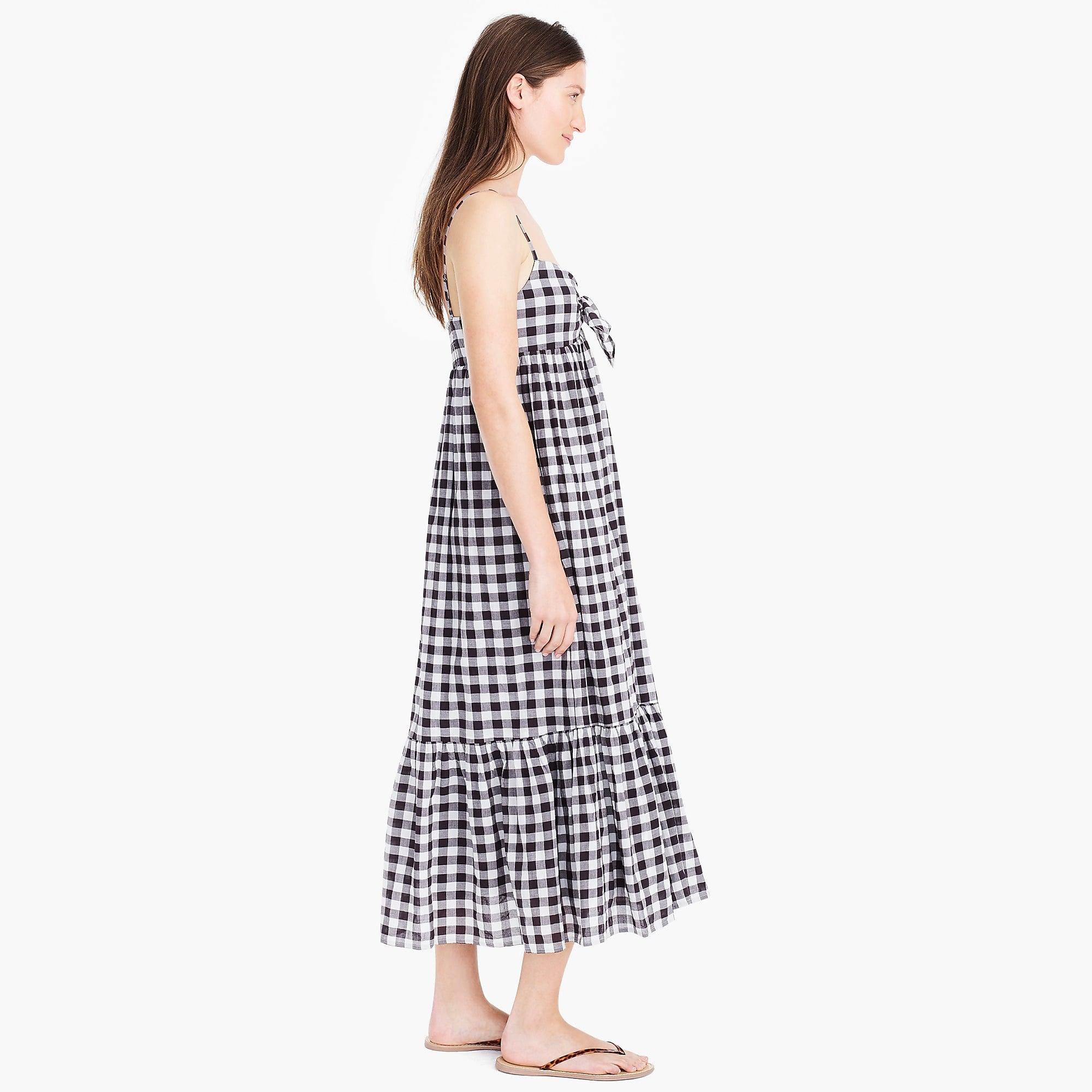 J Crew Cotton Beach Dress With Tie Front In Oversized Gingham In Black Lyst